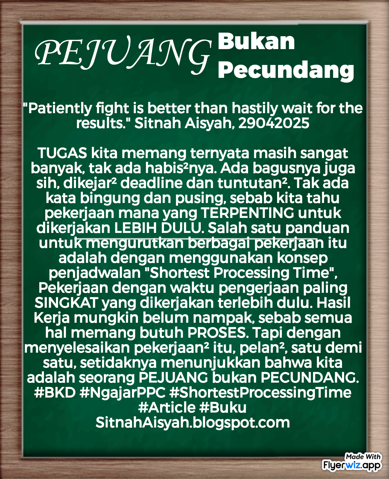 "Patiently fight is better than hastily wait for the results." Sitnah Aisyah, 29042025